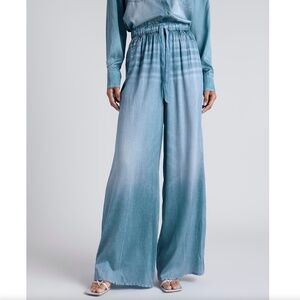 SPLENDID x Kate Young Silk Wide Leg Denim-Print Pant $368 NWT XS