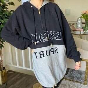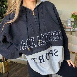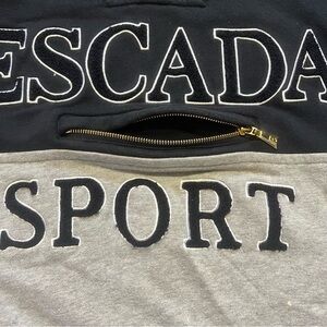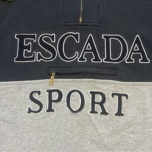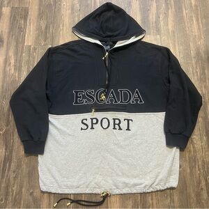 Escada Sport Vintage Bicolor Big Logo 1/4 Zip Hoodie Sweatshirt Activewear L