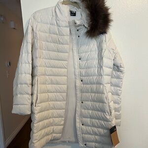 The North Face Cream Puffer Jacket with Faux Fur
