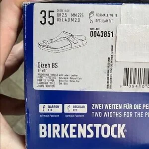 New in box, Gizeh BS Birkenstocks in the normal/regular fit.