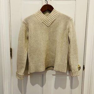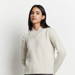 A lightweight V-neck sweater knit from fine Australian merino wool for a soft, luxurious feel. Relaxed fit with dropped shoulders this pullover looks great layered or worn solo. Ribbed trim.