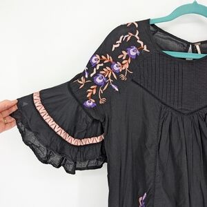 Free People Pavlo Embroidered Black Floral Boho Dress