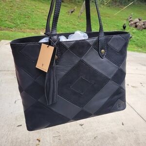 FRYE Black Miren Leather Patchwork Shopper Tote