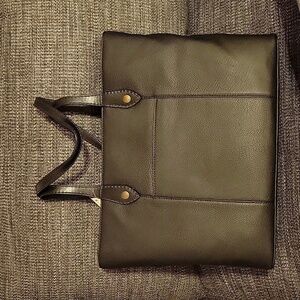 Dual carry handles, detachable tassel accent, suede details, grained finish, includes dust bag and registration card.