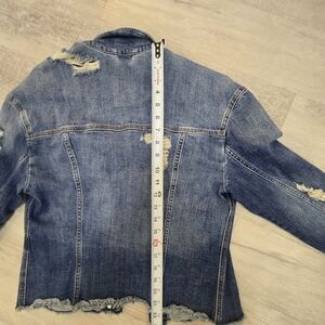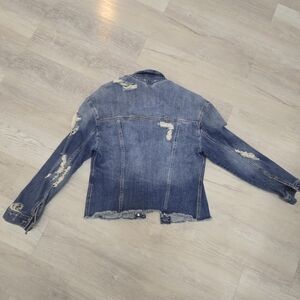 HOLLISTER JEAN JACKET Trucker Distressed Destroyed Stretch SIZE S Frayed Heavier
