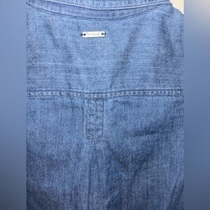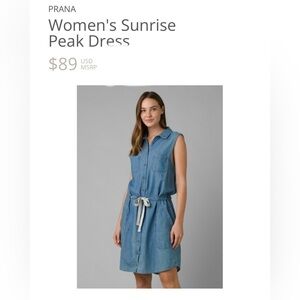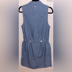 Prana Sunrise Peak Denim tie Waist Button Down Dress w Chic Oversized Pockets SM