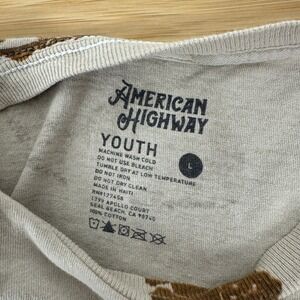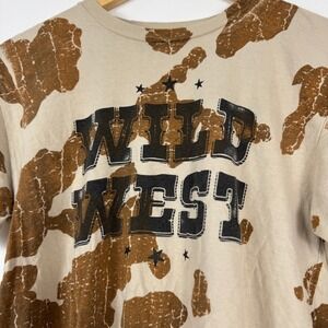 American Highway Wild West Cow Print Oversized T Shirt Youth Size L Western Chic
