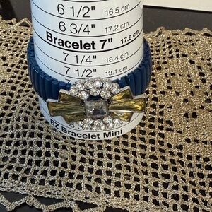 Add a touch of elegance to your outfit with this stunning navy and gold bracelet. Perfect for any occasion.