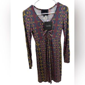 Leota NWT Knit Bold Color Geometric Stretch Popover Sz Small