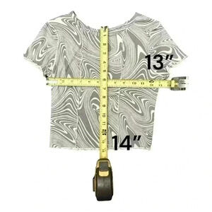 Crop top tee by SO. Preowned and gently worn. No rips, tears or stains. Measurements are approximate and are attached in photos. Material and care instructions as well are attached in photos.