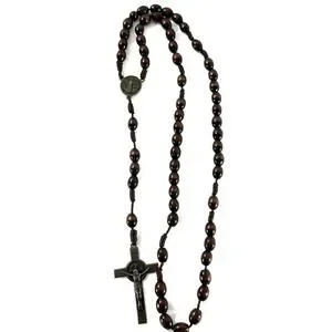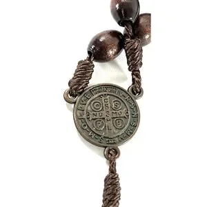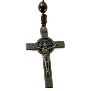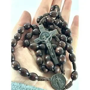 Catholic St Benedict Rosary Wooden Beads Metal Crucifix INRI 20”