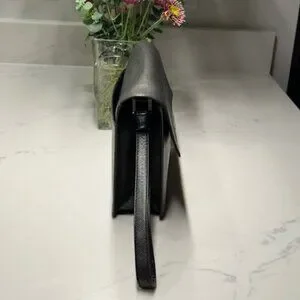 Louis Vuitton Selenga Taiga clutch / wristlet in black. The wristlet strap can be tucked inside if you wish to use the bag as a clutch.