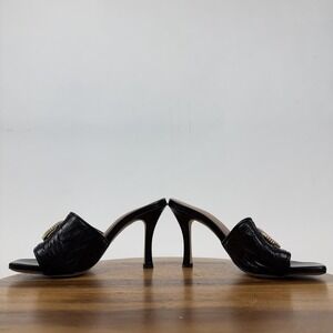 Womens Valentino Venere Black Quilted Leather Logo Medallion Heel Sandals Size 9