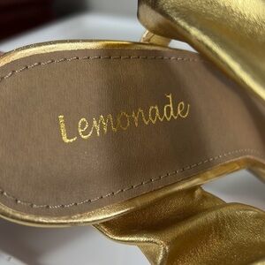 Lemonade Heel Gold Metallic Square Toe High Heel Sandals Women's Size 6 Stacie