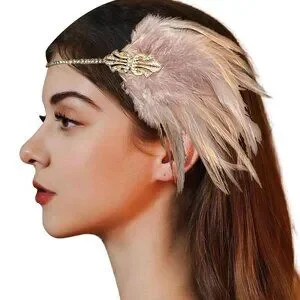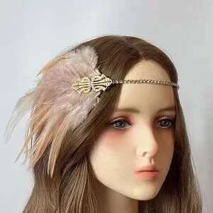 Features: Eye-catching headband adorned with pink feathers and sparkling crystal chains. Secured with an elastic band, it stays in place while adding a touch of old Hollywood glamour.