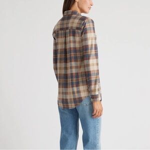 Features a classic plaid pattern in warm neutral tones with a comfortable stretch knit fleece fabric. Polished enough for everyday wear while still feeling relaxed and cozy — ideal for fall, winter, and transitional weather.