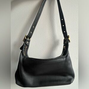 Vintage Coach Black Leather Shoulder Bag with Gold Accents