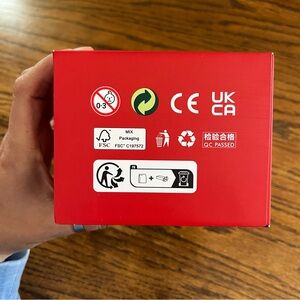 Cute doll keychain with red and black colors. Features a unique design with a star detail.
