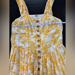 Free People Dance On The Blacktop Yellow Floral Print Tiered Ruffle Mini Dress like new