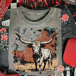 Western Country Graphic Tee - Longhorn Bull Tshirt - Yellowstone - Rodeo Shirt