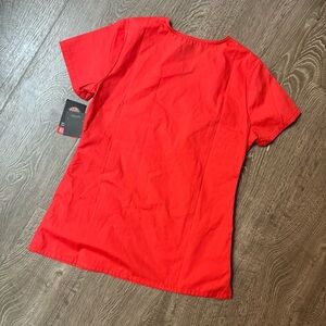 Classic red V-neck scrub top from Dickies. Durable, comfortable, and perfect for healthcare or workwear.
