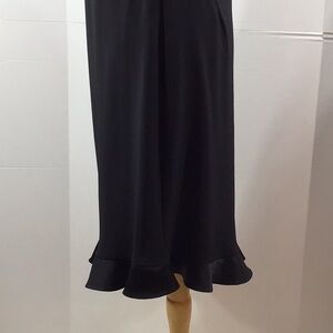 Donna Ricco Black Ruffle v neck asymmetrical hem Midi date night Dress 10