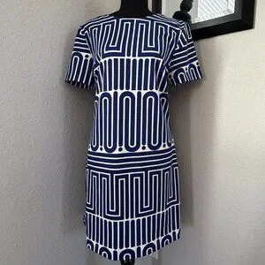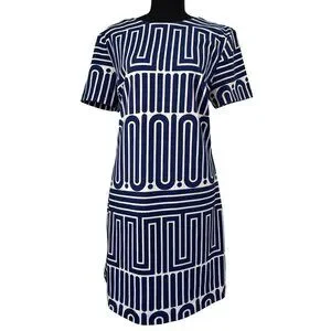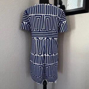TRINA TURK Zap Geometric Short Sleeve Shift Dress Blue White Large