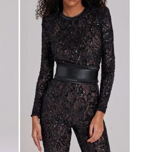Nadine Merabi Bella Black Floral Lace Jumpsuit