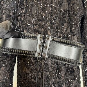 Turn every entrance into a moment with the BELLA Black Floral Lace Jumpsuit, a signature MERABI piece that redefines eveningwear. Crafted from sequin-embellished floral lace with a sultry nude lining, this black jumpsuit is all about confidence and allure. Whether worn with or without the leather corset belt, BELLA delivers a striking silhouette that speaks volumes.