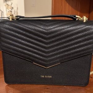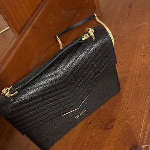 Ted Baker London Black Shoulder Bag with Gold Accents and Adjustable Strap