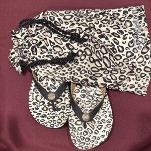 Brighton Leopard Print Sandals with Black and Tan Straps NWT & Dustbag - Size 9