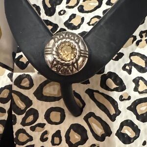 Stylish & fun leopard print sandals by Brighton. Features black and tan straps. Perfect for casual wear!