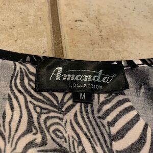 Amanda Collection Black White Grey Animal Print Sleeveless Dress - Size M Description: Make a statement with this eye-catching sleeveless dress from Amanda Collection! Featuring a bold and stylish mix of zebra and leopard prints in shades of black, white, and grey, this dress is sure to turn heads. The fabric appears to have a good drape and flow, making it comfortable for various occasions. Perfect for a night out, a special event, or adding a touch of wild style to your everyday wardrobe. Details: * Brand: Amanda Collection * Color: Black, White, Grey (Animal Print) * Style: Sleeveless dress, A-line or flowy silhouette * Pattern: Mixed animal print (zebra, leopard/cheetah) * Condition: Excellent pre-owned condition, no visible flaws Amanda Collection, animal print, zebra print, leopard print, cheetah print, black and white dress, grey dress, sleeveless dress, A-line dress, midi dress, knee-length dress, cocktail dress, casual dress, statement dress, unique print, comfortable, stylish, Canadian seller