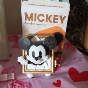 Popmart Dimoo world Journal of life. This one is called attachment. Brand new Popmart Mickey Boundless Creativity. Very cute. He's called the Painting Mickey. Then I have the Symbiote Neverland this one is called Begonia Dog this one is NOT Popmart. Very Adorable. Holding a heart 🩷 and has an eye patch heart as well. Great deal you will receive all 3. I will include some goodies.
