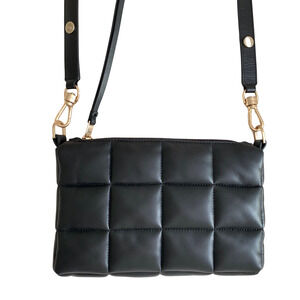 ALLSAINTS Eve Quilt Crossbody Bag Black Leather Adjustable Strap Gold Hdwr EUC