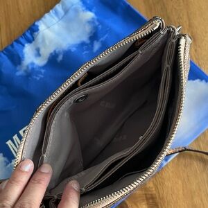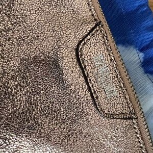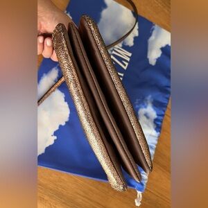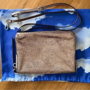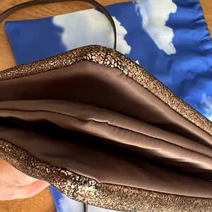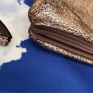 Pre-owned MZ Wallace metallic crackled gold/copper Pippa convertible clutch/crossbody.