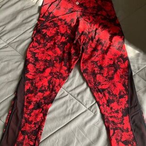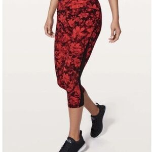 Lululemon Train Times Crop 21" CarmineTrue Red Black Floral Leggings Size 4