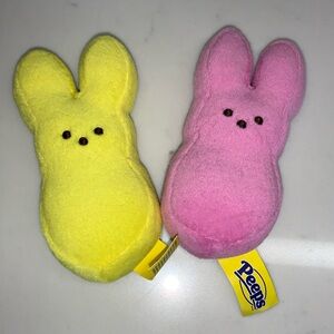 Delight your child with this adorable Peeps plush stuffed animals set. Featuring vibrant blue, pink, and yellow colors, these soft toys are perfect for cuddling and playtime. A charming addition to any toy collection, or your Spring Easter basket