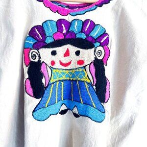 Vintage Ethnic Embroidered Short Sleeve Top S