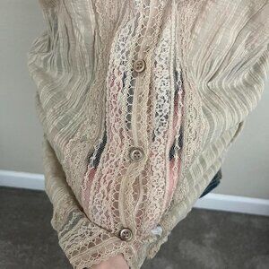 y2k beige lace coquette cottagecore button up top