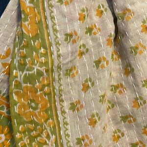 •Versatile kantha piece (scarf, head wrap, sarong, decor) handmade in India from cotton saree fabric.