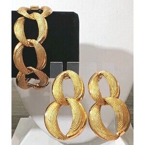 Napier Textured Gold Tone Link Bracelet Earring Vintage Set