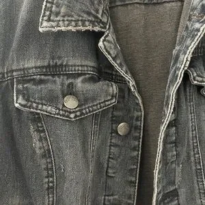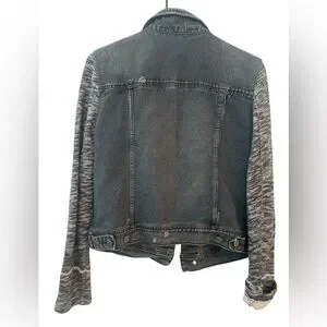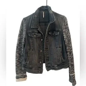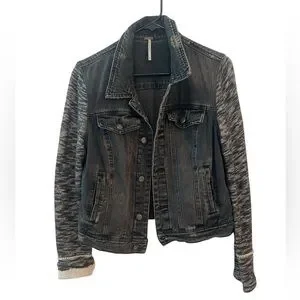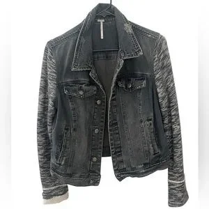 Free People Distressed Mixed Media Denim Jacket Black Sweater Sleeves – M