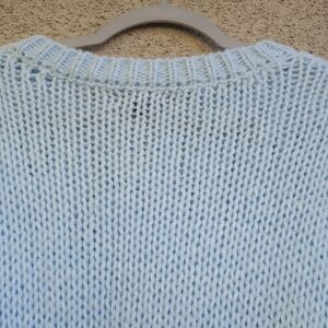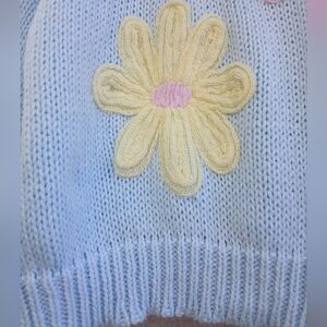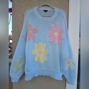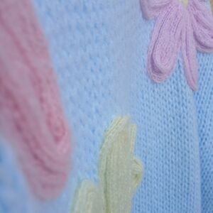 Embrace a playful look with this pastel sweater featuring charming floral designs. Perfect for adding a touch of whimsy to your wardrobe. In good pre-owned condition