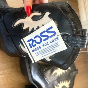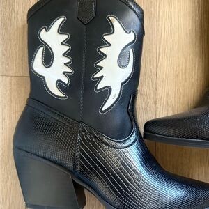 Soda NWT black heeled boots with white detail size 8