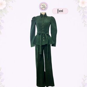 Betsey Johnson Alley Cat • 70s Corduroy Pantsuit • Jacket & Bell Bottoms • Green