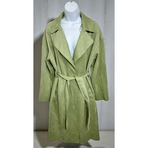 Women's Primark Sage Green Coat Sz Small Suede Like Soft Trench Coat Belt