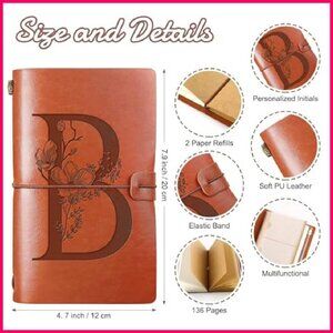 Brand new, never used, and in pristine condition — this elegant monogrammed travel journal offers a personalized and thoughtful touch, perfect for documenting memories, sketching ideas, or planning adventures. The refillable design and premium materials ensure it's both practical and a cherished keepsake.