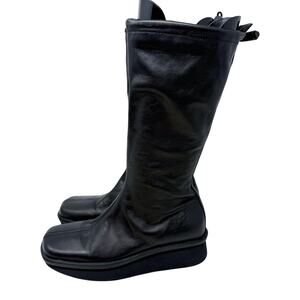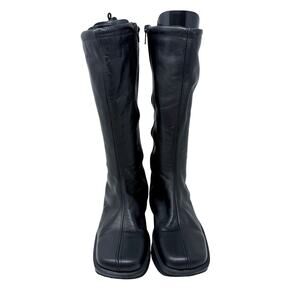 Vintage Y2K Nine West Black Leather Square Toe Platform Boots Women's Size 8