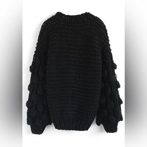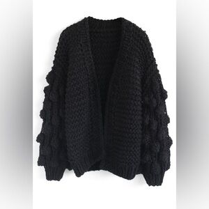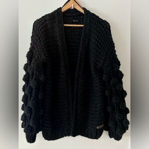 RACHEAL Chunky Black Bubble Sleeve Cardigan - Oversized Boho Knit - Size M